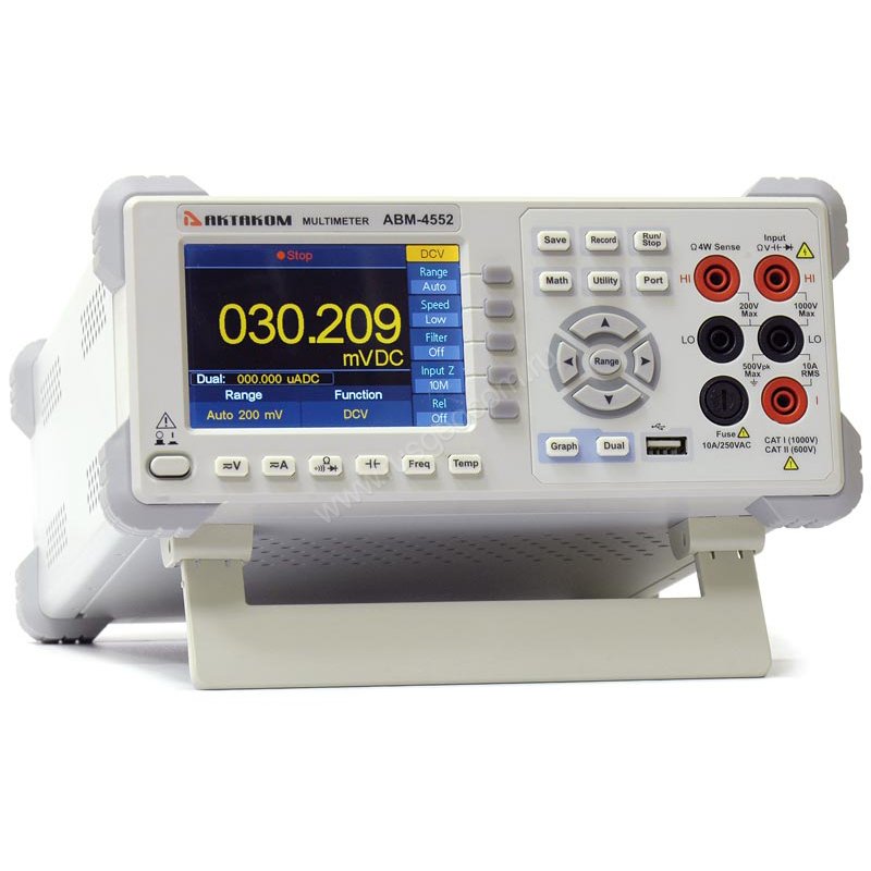 Мультиметр Актаком АВМ-4552 — это высокоточный измеритель с разрешением дисплея 5½ разрядов, отличающийся высокой производительностью, высокой точностью измерений и широкими функциональными возможностями, включая измерение иcтинных среднеквадратических значений (TrueRMS) и возможность дистанционного управления при помощи SCPI команд. Цифровой мультиметр АВМ-4552 имеет функции автоматического измерения и анализа результатов измерений. Измерительные возможности мультиметра АВМ-4552 можно расширить путём подключения к нему внешних датчиков. Прецизионный мультиметр АВМ-4552 построен с использованием новейших технологий и является мощным и эффективным средством измерений для применения в различных отраслях промышленности, научных исследованиях, образовании, сервисных службах.