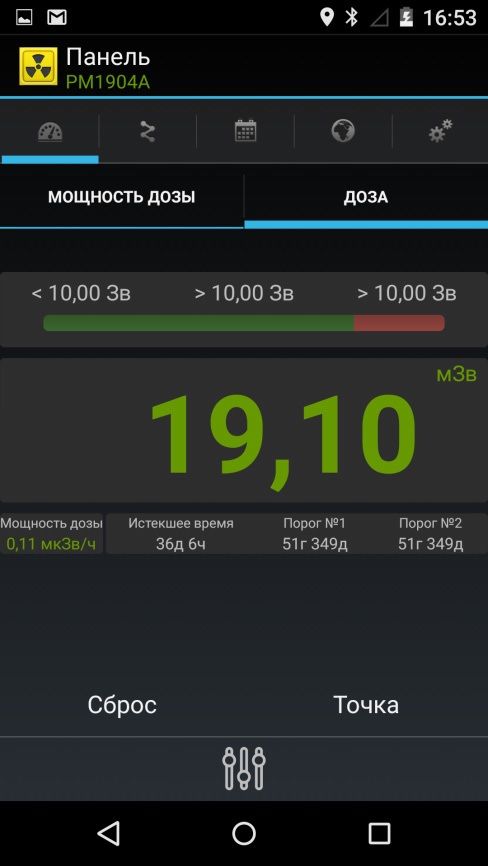 Отображение результатов эквивалента дозы