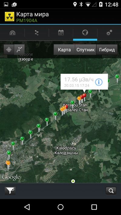 Запись треков перемещения пользователя с отображением радиометрических данных на электронной карте