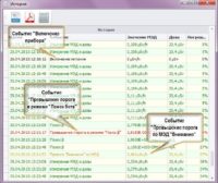 Управление работой прибора: установка пороговых значений, интервалов записи событий истории