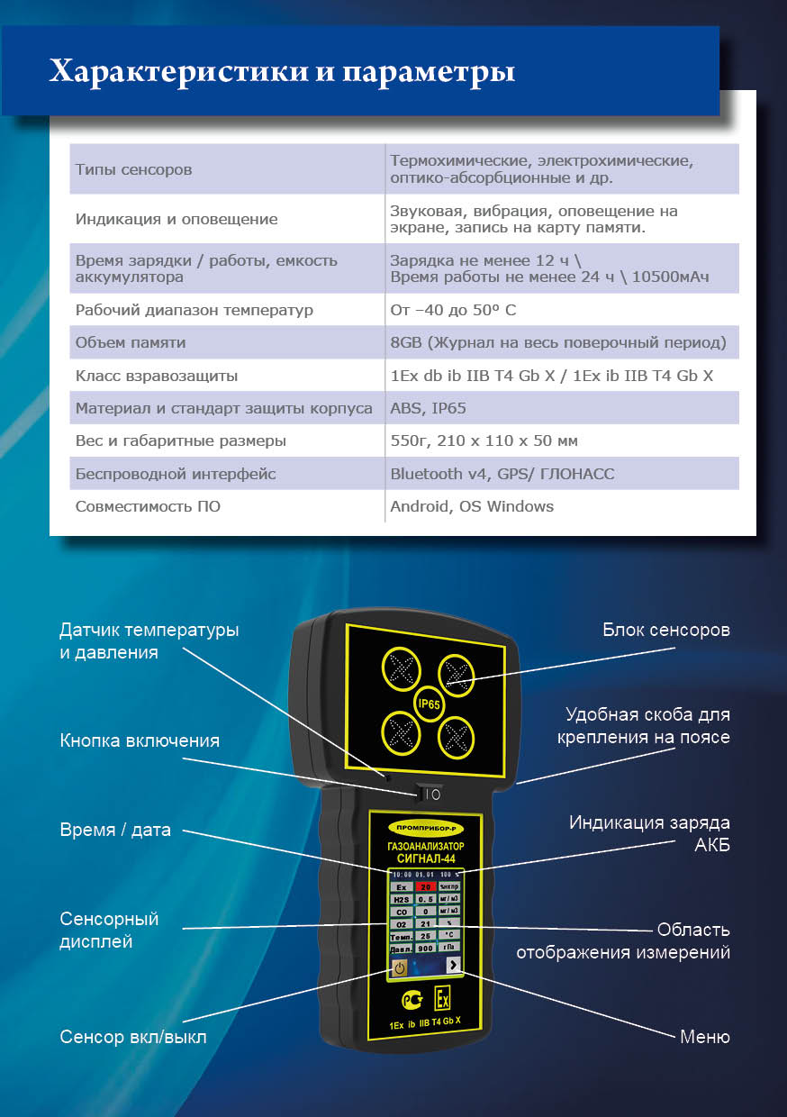Газоанализатор взрывоопасных и токсичных газов Сигнал-44 (H2S/CH4)