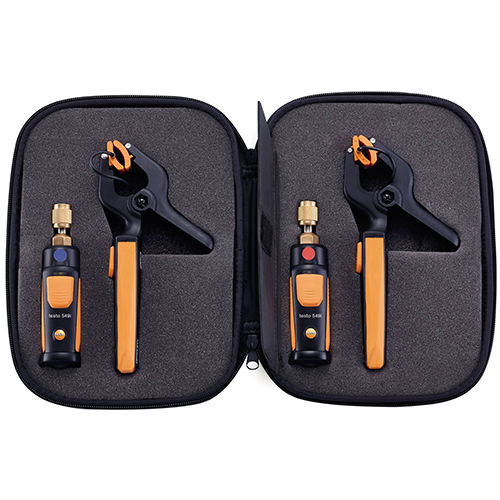 Измерительные приборы можно легко и быстро подключить к Вашему смартфону или планшету по Bluetooth. С помощью мобильного приложения, установленного на Вашем устройстве, Вы сможете осуществлять все необходимые измерения при пусконаладке, сервисном обслуживании и диагностике холодильных систем, кондиционеров и тепловых насосов. Оба прибора, входящие в комплект (testo 115i и testo 549i) можно быстро и легко установить непосредственно в точке замера температуры или на системе под давлением. Также благодаря использованию беспроводных технологий существенно упрощается измерение в системах с удаленными друг от друга точками замера. Отсутствие необходимости использования для измерения каких-либо шлангов, позволяющее свести к минимуму потери хладагента, особенно практично. Удобный кейс testo Smart Case обеспечивает надежную защиту измерительных приборов.