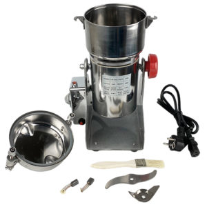Мельница снабжена двумя сменными стаканами: на 200 и 400 мл и двумя крышками с одинарным и двойным ножом. Одинарный нож предназначен для размола сухих образцов. Двойной крестовидный нож  используется для влажных или полужидких образцов.