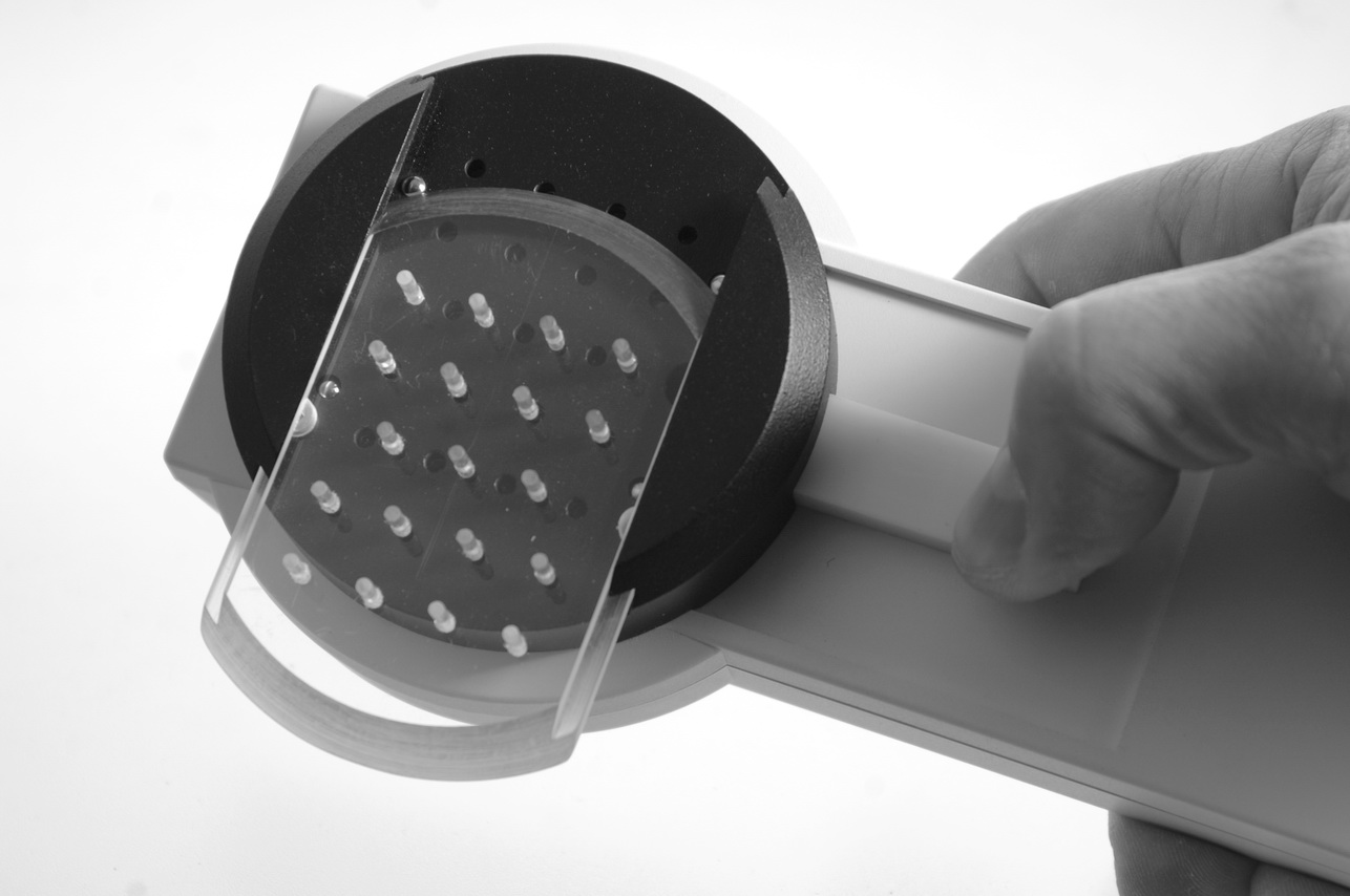 Лазерный душ (810 нм — 190мВт). Применение лазерного душа позволяет существенно повысить эффективность лазерной терапии, сократить время процедуры. Каждый облучатель состоит из девятнадцати лазерных диодов соответствующего диапазона, объединенных в кластер и имеющих стабилизированную мощность излучения.