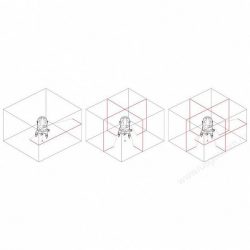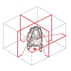 Лазерная система нивелира RGK LP-64 представлена пятью мощными диодными излучателями: четыре для построения вертикальных плоскостей с углом развертки 120° и один для горизонтальной 110°. Работать с лазерными лучами можно в нескольких конфигурациях: