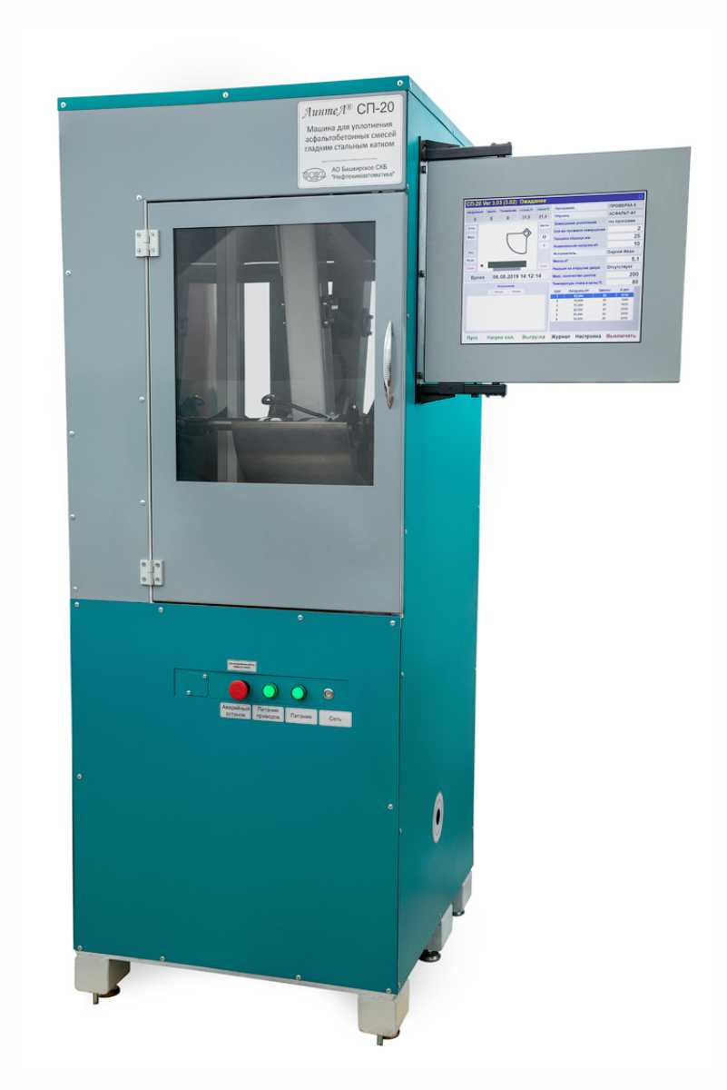 • Машина СП-20 предназначена для приготовления образцов-плит размером 320 х 260 мм, необходимых для проведения испытаний на определение стойкости к колееобразованию прокатыванием нагруженного колеса и получения испытательных образцов в лабораториях, занимающихся контролем качества асфальтобетонных покрытий