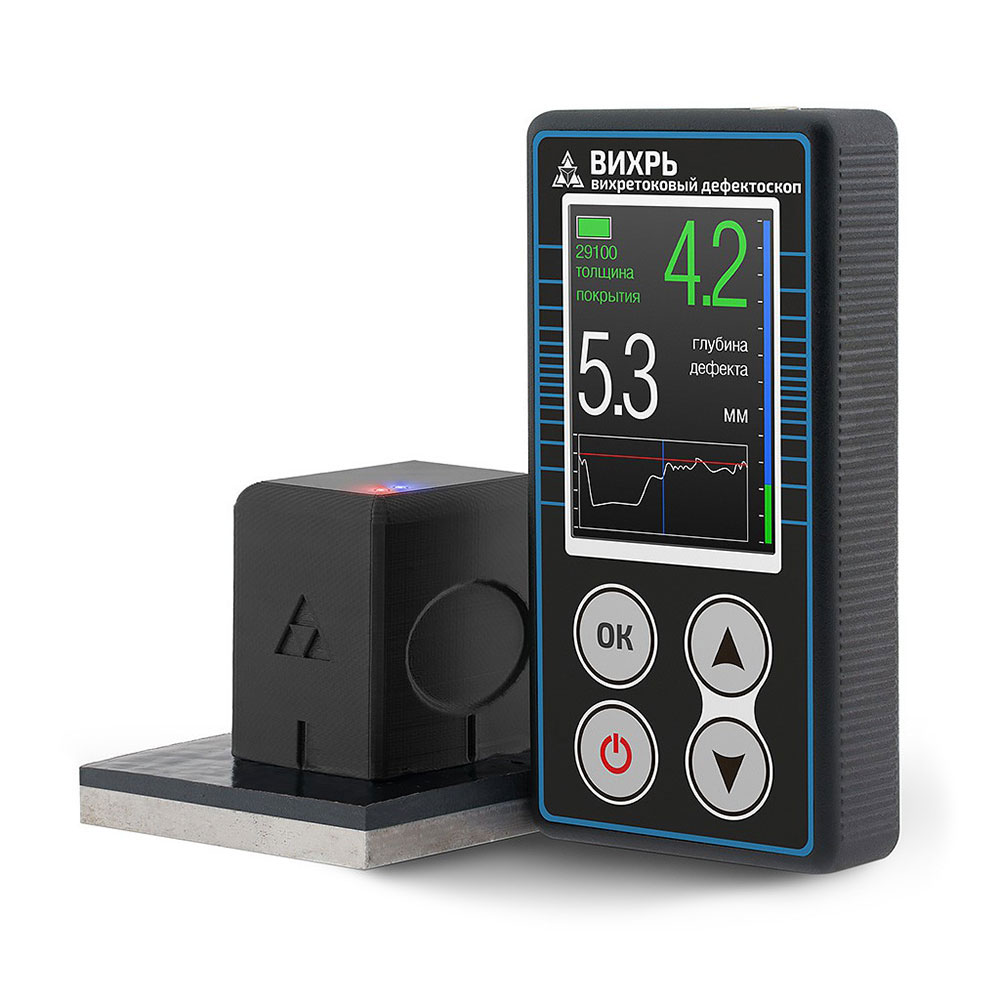 Многофункциональный магнитно-вихретоковый дефектоскоп Вихрь выявляет и измеряет глубину стресс-коррозионных трещин в металлических ферромагнитных конструкциях, в том числе под слоем коррозии и/или защитного покрытия, а также толщину изоляции. Измерения проводятся с минимальной погрешностью.