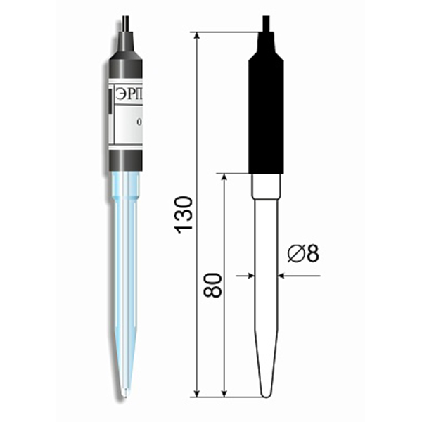 Электрод редоксметрический платиновый ЭРП-103 предназначен совместно с электродом сравнения и электронным преобразователем (например, рН-метром) для измерений окислительно-восстановительного потенциала в водных растворах, пульпах и средах, не содержащих фтористоводородной кислоты, а также веществ, загрязняющих поверхность платины. Электрод является прибором общего назначения для использования в лабораториях различного профиля.