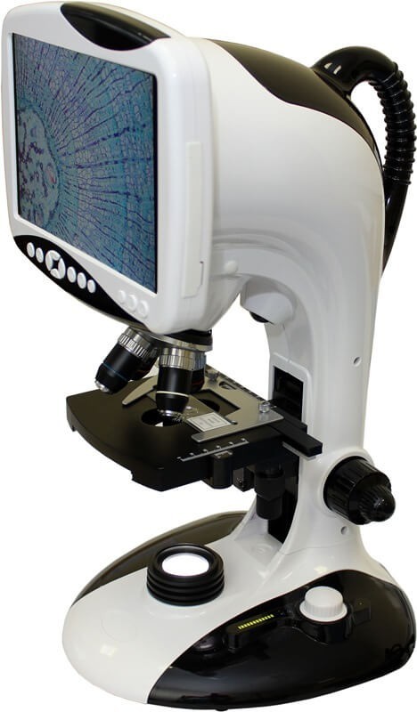 LCD микроскоп  Биолаб В-3 Цифровой LCD-микроскоп Биолаб В-3 это высокотехнологический микроскоп с интегрированным LCD-дисплеем, профессиональной камерой высокого разрешения и картой памяти большого объема. Исследуемые объекты наблюдаются на 9-ти дюймовом дисплее для легкой и комфортной работы. Изображения, получаемые на дисплее, а также видеоролики можно сохранить на карту памяти. Преимущества для пользователя: — Высокое качество получаемых изображений, разрешение камеры 12 МПкс;- Наличие LCD-дисплея вместо традиционных окуляров облегчает работу оператора;- Возможность сохранять фотографии и видеофайлы на SD-карту памяти;- Возможность подключать микроскоп к внешнему дисплею или проектору с HDMI-разъемом позволит демонстрировать препараты в аудитории;- Наличие встроенной шкалы позволит легко и точно проводить измерения линейных размеров; Отличительные особенности: — Большой 9″ LCD-монитор;- Профессиональная камера высокого разрешения 12Мпкс;- Светодиодная система для исследования в проходящем свете и боковой осветитель;- 4 стандартных объектива увеличением: 4х; 10х; 40; 100х;- 2 объектива малого увеличения с увеличенным рабочим отрезками: 1х и 2х;- В комплектацию входит SD-карта памяти.