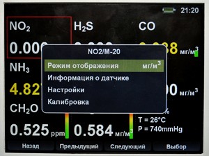 Режим работы прибора — автоматический. При включении прибора, сменные датчики выдают сигнал, в виде цифрового кода, пропорционально концентрации определяемого вещества.