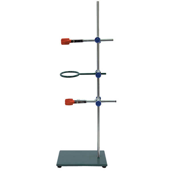 Зажимы (лапки), кольцо, крепежи отлиты из стали и покрыты порошковой краской. Основание штатива выполнено из стали, покрытого порошковой краской, штанга — из нержавеющей стали.