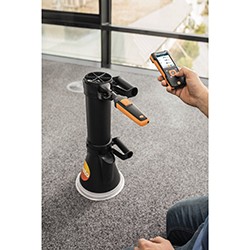 Вентиляционные решетки: Используйте зонд-крыльчатку для определения скорости воздуха и объёмного расхода на вентиляционных решетках. При измерениях поперечного сечения вентиляционной решетки петлевидными движениями значения скорости воздуха суммируются для вычисления среднего значения сразу на большой площади 100 мм. В результате точность измерений петлевидными движениями значительно повышается. Для измерений на потолочных решетках: телескопическая рукоятка (длиной до 1 м) с хорошо читаемой шкалой и угловым кронштейном 90° легко присоединяется к зонду. Угловой кронштейн 90° позволяет правильно расположить зонд под потолком. Для высоких потолков вы можете использовать телескопический удлинитель, увеличивающий длину зонда до 2 метров (телескопическая рукоятка и телескопический удлинитель заказываются отдельно).