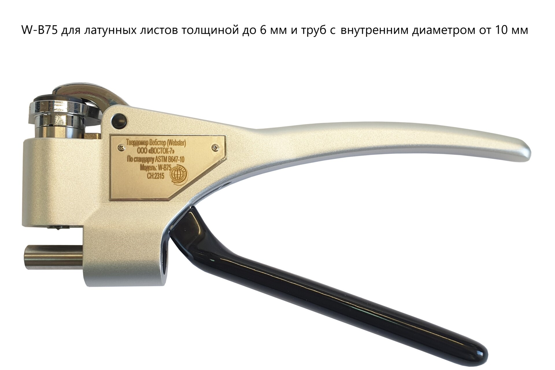 Твердомер Вебстер (Webster) - портативный инструмент для быстрого контроля твёрдости в соответствии со стандартом ASTM B647. Механический индикатор указывает значение твёрдости после сжатия ручек инструмента (аналогично щипцам или пассатижам).