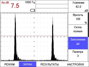 Полноэкранный режим работы УЗ дефектоскопа УСД-50 —  640х480 точек