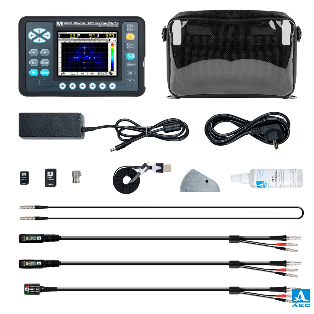 • А1550 IntroVisor — электронный блок ультразвукового дефектоскопа со съёмным аккумулятором (ультразвукового томографа с цифровой фокусировкой антенной решетки)