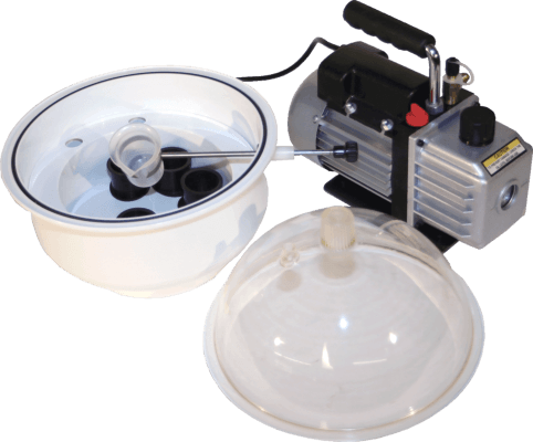Вакуумная установка для надежной фиксации образца в компауд перед. шлифовально-полировальной подготовкой к металлографическому анализу. Такой способ пробоподготовки применяется для образцов с трещинами, пустотами, порами, при наличии покрытий и прочих задач. Благодаря полной дегазации и заполнению пустот, вы получаете возможность быстро и недорого подготовить сложный образец к исследованию.