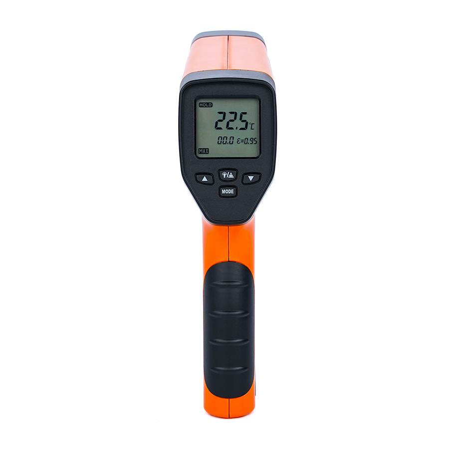Пирометры инфракрасные Verdo IT1503 предназначен для бесконтактного измерения температуры поверхностей твёрдых тел, газовых струй и расплавов различных материалов. Работает на основе преобразования потока инфракрасного излучения исследуемого объекта через оптическую систему и инфракрасный фильтр на фотоэлектрический приёмник. Затем сигнал преобразуется внутренней микропроцессорной системой в цифровой сигнал. Пирометр изготовлен в пластиковом корпусе с инфракрасным датчиком, лазерным целеуказателем и кнопкой для измерения температуры и включения пирометра. На лицевой стороне расположены жидкокристаллический дисплей и кнопки управления. Микропроцессорная система пирометров обеспечивает обработку результатов измерений и индикацию текущего значения температуры объекта на дисплее.